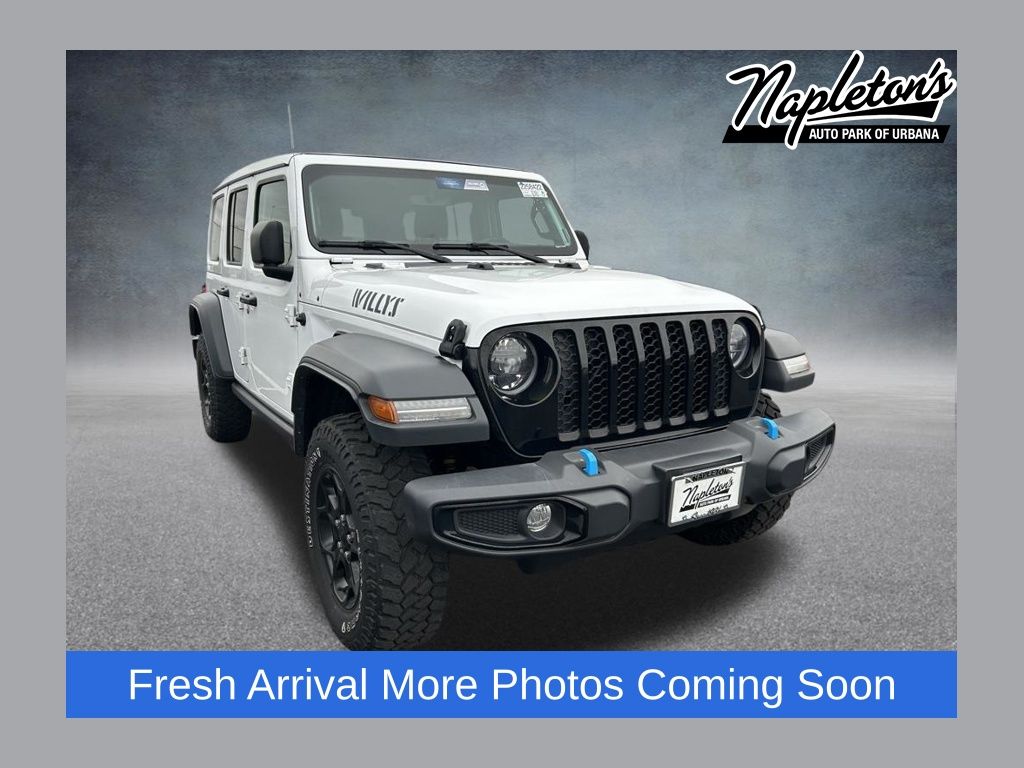 GPS Navigation,8.4" Radio & Premium Audio Group,Convenience Group,Quick Order Package 24W Willys,Technology Group,8 Speakers,Alpine Premium Audio System,AM/FM radio,GPS Antenna Input,HD Radio,Integrated Voice Command w/Bluetooth,Radio data system,Radio: Uconnect 4 w/7" Display,Radio: Uconnect 4C Nav w/8.4" Display,SiriusXM Radio Service,SiriusXM Satellite Radio,Air Conditioning,Air Conditioning w/Auto Temperature Control,Front 1-Touch Down Power Windows,Power steering,Remote Keyless Entry,Security Alarm,Speed Sensitive Power Locks,Steering wheel mounted audio controls,Universal Garage Door Opener,Front Heavy Duty Red Accent Shock Absorbers,Normal Duty Suspension,Rear Heavy Duty Red Accent Shock Absorbers,Traction control,2-Door Passive Entry, Front Door Locks,4-Wheel Disc Brakes,ABS brakes,Dual front impact airbags,Dual front side impact airbags,Emergency communication system: SiriusXM Guardian,Front anti-roll bar,Integrated roll-over protection,Low tire pressure warning,Occupant sensing airbag,Power Tailgate Lock,Rear anti-roll bar,Mold In Color Bumper w/Gloss Black,Brake assist,Electronic Stability Control,ParkView Rear Back-Up Camera,Automatic Headlamps,Daytime Running Lamp System,Delay-off headlights,Front fog lights,Speed control,Anti-Spin Differential Rear Axle,220 Amp Alternator,400W Inverter,4-Wheel Drive Decal,Black 3-Piece Hard Top,Black Grille,Body Color Fender Flares (2-Piece),For More Info, Call 800-643-2112,MOPAR Spray In Bedliner,Power Heated Mirrors,Protection Sill Rails,Willys,Willys Hood Decal,1-Year SiriusXM Guardian Trial,110 MPH Vehicle Max Speed Calibration,115V Auxiliary Power Outlet,5-Year SiriusXM Traffic Service,5-Year SiriusXM Travel Link Service,8.4" Touchscreen Display,97 MPH Vehicle Max Speed Calibration,Apple CarPlay,Apple CarPlay/Android Auto,Auto-Dimming Rear-View Mirror,Cluster 7.0" TFT Color Display,Compass,Console Bin Task Light,Driver door bin,Driver vanity mirror,Emergency/Assistance Call,For Details, Visit DriveUconnect.com,Front reading lights,Google Android Auto,Integrated Center Stack Radio,Leather Wrapped Steering Wheel,Media Hub w/2 Charge Only USBs,MOPAR All-Weather Slush Mats,Off-Road Info Pages,Outside temperature display,Passenger vanity mirror,Rear reading lights,SiriusXM Traffic Plus,SiriusXM Travel Link,Sun Visors w/Illuminated Vanity Mirrors,Tachometer,Telescoping steering wheel,Tilt steering wheel,Trip computer,USB Host Flip,Cloth Low-Back Bucket Seats,Front Bucket Seats,Split folding rear seat,Front Center Armrest w/Storage,Passenger door bin,Wheels: 17" x 7.5" Black Aluminum w/Gray Pad,Wheels: 17" x 7.5" Black Steel Styled,Deep Tint Sunscreen Windows,Variably intermittent wipers,3.73 Rear Axle Ratio