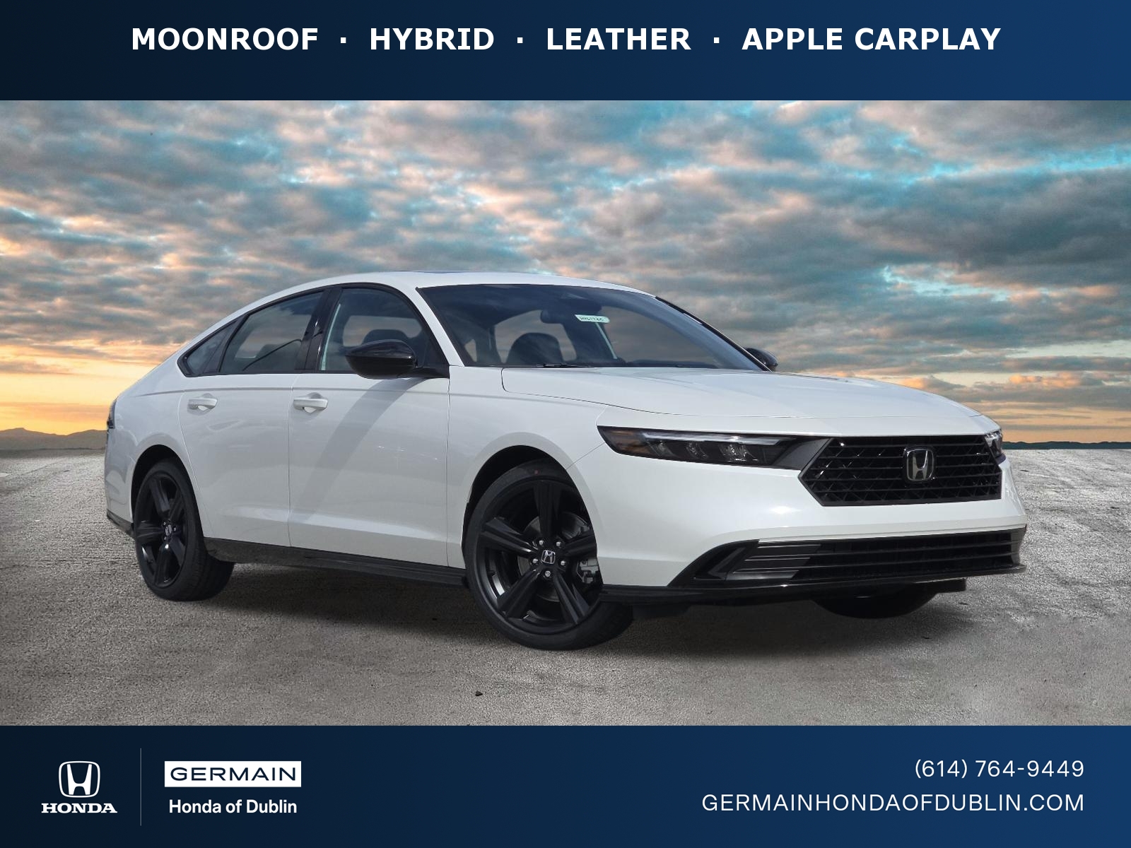 DESIRABLE FEATURES: This coveted new 2026 Honda Accord Hybrid Sport-L features: HYBRID, MOONROOF, LEATHER, ANDROID AUTO, APPLE CARPLAY, HEATED SEATS, DRIVER ATTENTION MONITOR, ALLOY-WHEELS, WIRELESS CHARGER, BLIND SPOT MONITOR, BLUETOOTH, BACKUP CAMERA, and is available today for Columbus, OH drivers at our Honda dealership near you. Attention auto enthusiasts! This brand-new 2026 fwd Honda Accord Hybrid Sport-L boasts a gorgeous Platinum White Pearl exterior, enhanced by the well-appointed Black interior. INTERIOR OPTIONS: Reward yourself with upscale convenience in your next new Honda; this 2026 Honda Accord Hybrid featuring: Heated Front Seats, Sunroof, Leather Seats, Rear Heat / AC, Moonroof, Automatic Climate Control, Dual Power Seats, Leather Wrapped Steering Wheel, Memory Seats, Compass, Power Drivers Seat, Driver Illuminated Vanity Mirror, Bucket Front Seats, Air Conditioning, Steering Wheel Audio Controls, Illuminated entry, Cabin Air Filter, Telescoping Wheel, Steering Wheel Cruise Control, Rear Reading Lights, Auxiliary 12v Power Outlet, Auto Dimming R/V Mirror, Steering Wheel Controls, Ambient Lighting, Rear Seat Center Armrest, Passenger Illuminated Visor Mirror, Multi-zone Climate Control, Overhead console storage, Vanity Mirrors, ECO feedback display gage, Overhead Console, Outside Temperature Gauge, Bench Seats, Floor Mats, AM/FM Stereo, Rear Window Defroster, Tilt Steering Wheel, Cup Holder(s), Digital Clock, Digital Instruments, Center Armrest, Trip Odometer, Usb Ports, Reading Lights. EXTERIOR OPTIONS: You'll be the envy of your neighborhood in this 2026 Honda Accord Hybrid, available at Germain Honda of Dublin. This vehicle sports: Alloy Wheels, Aluminum Wheels, Power Folding Mirrors, Cargo light, Tinted Glass, Auto Headlamp, Courtesy Lights, Proximity cargo area access release, Spoiler. TECHNOLOGY FEATURES: Germain Honda of Dublin is proud to provide Honda's cutting-edge features to our Ohio customers. This state-of-the-art 2026 Honda Accord Hybrid Sport-L won't disappoint, with tech features including: WiFi Mobile Hotspot, Android Auto by Google, Wireless streaming, Apple CarPlay Capable, Keyless Start, Smart Device Integration, Built-in virtual assistant, Wireless Smartphone Charger, Internet Radio, Voice Command Features, Bluetooth Connection, Primary display touchscreen, All-in-one key, Onboard Hands-Free Connectivity, Keyless Entry. MECHANICAL FEATURES:This fwd 2026 Honda Accord Hybrid is offered factory-equipped with an athletic 4cyl,, 146 hp engine, paired with a silky-smooth automatic transmission. Other appealing installed mechanical features include: Push Button Start, Power One-touch down windows, Paddle Shifters, Hybrid Electric Motor, Traction Control, Power Locks, Cruise Control, Auto Transmission with Manual Mode, Rear Seat Heat Ducts, Ventilated Disc Brakes, Power Passenger Seat, Start stop engine, Driver selectable steering effort, Variable Speed Intermittent Wipers, Service interval indicator, Trip Computer, Remote Fuel Door, Remote Trunk Release. SAFETY OPTIONS: Our Honda dealership near Dublin is proud of Honda's outstanding safety record. This Honda Accord Hybrid, like all Honda vehicles, delivers an impressive roster of safety equipment. This 2026 Accord Hybrid Sport-L is sold furnished with features like: Lane Departure Warning, Electronic Stability Control, Back-Up Camera, Blind Spot Monitoring, Lane Keeping Assist System, Brake Assist, Rear Collision Warning, Restricted driving mode, Emergency SOS system, Daytime Running Lights, Security System, Adaptive Cruise Control, Autonomous cruise control, Traffic sign information, Pedestrian Protection System, Teen Driver Technology, Dual Air Bags, Rear Side Impact Airbags, Knee AirBag, Drivers Air Bag, Front Head Restraints, ABS Brakes, Delay-off headlights, Rear Seat Reminder Check Warning, Hill start assist, Auto Highbeams, Overhead airbag, Forward Collision Warning, LED Tail Lights, Speed Sensitive Power Steering, Automatic Brake Hold, Low tire pressure warning, Speed Sensitive Volume Control, Vehicle tracking system, Driver Front Side Impact Air Bag, Child Proof Locks, Passenger Air Bag Sensor, Valet Key, Engine Immobilizer, Passenger Front Side Impact Airbag, Key in vehicle warning. SERVICE & MAINTENANCE: Enjoy comprehensive service and maintenance for your 2026 Honda Accord Hybrid from the experts at our Columbus Honda dealership. You'll appreciate the peace of mind when you visit our Honda Service Center at Germain Honda of Dublin, as your vehicle is cared for by Honda certified technicians with the tools and training to expertly maintain your Honda Accord Hybrid Sport-L using high-quality OEM Honda parts. Need financing assistance? Are you applying for new Honda financing? Germain Honda of Dublin is your personal ambassador for the auto loan application process. Our Germain Honda of Dublin financial services team will help you apply for Honda financing to get into this new 2026 Honda Accord Hybrid for sale. Germain Honda of Dublin makes it simple to secure the new car loans you need. That's why we are the preferred Honda dealer for customers near Columbus, Marysville, Delaware, and the neighboring Ohio communities. At our Honda dealership near you, we consider every customer to be a VIP. That's why at Germain Honda of Dublin, you can expect the white-glove, red-carpet customer service experience. Germain Honda of Dublin proudly presents this brand-new 2026 Honda Accord Hybrid Sport-L available for sale today with an additional 35 models available today at our Honda dealership near you! Don't forget that Germain Honda of Dublin is also ready to buy or trade for your used car, truck, or SUV! Let our Honda dealer near you value your car at our Columbus dealership to show how much you can save! Our Columbus Honda Dealership: Reach out to Germain Honda of Dublin today at (614) 388-8510 to schedule a test drive in this new 2026 Honda Accord Hybrid Sport-L for sale! Germain Honda of Dublin serves Co