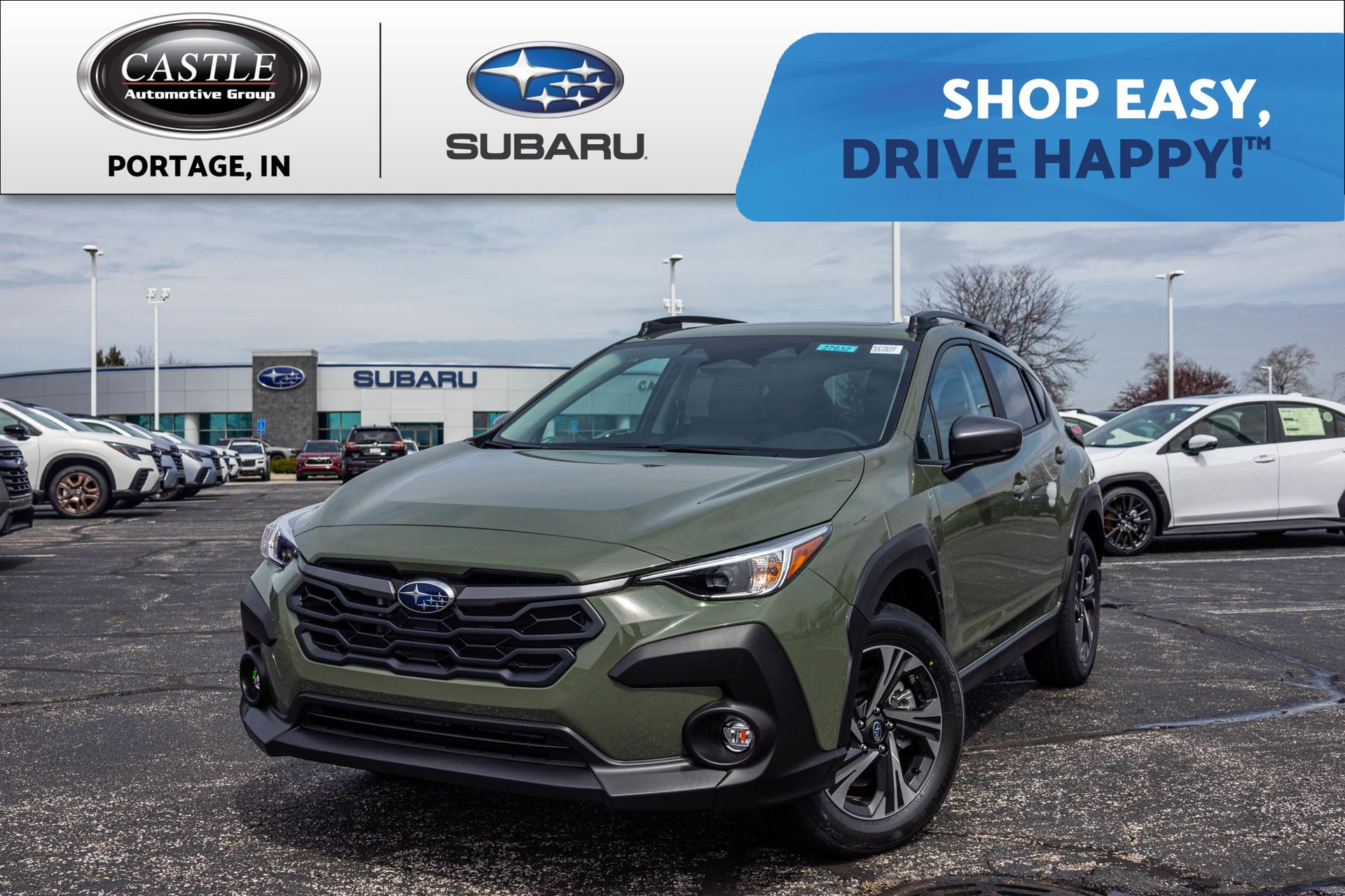 Popular Package #2,Standard Model,6 Speakers,AM/FM radio: SiriusXM,CD player,Radio data system,Radio: Subaru Starlink 6.5" Multimedia Plus System,Subaru Starlink Smartphone Integration,Air Conditioning,Rear window defroster,Power steering,Power windows,Remote keyless entry,Steering wheel mounted audio controls,Four wheel independent suspension,Speed-sensing steering,Traction control,4-Wheel Disc Brakes,ABS brakes,Dual front impact airbags,Dual front side impact airbags,Emergency communication system: STARLINK Safety and Security,Front anti-roll bar,Knee airbag,Low tire pressure warning,Occupant sensing airbag,Overhead airbag,Rear anti-roll bar,Rear Bumper Cover,Brake assist,Electronic Stability Control,Exterior Parking Camera Rear,Front fog lights,Fully automatic headlights,Panic alarm,Security system,Speed control,Bumpers: body-color,Heated door mirrors,Power door mirrors,Roof rack: rails only,Splash Guards,Spoiler,All-Weather Floor Liners,Auto-Dimming Mirror w/Compass & HomeLink,Driver door bin,Driver vanity mirror,Front reading lights,Illuminated entry,Leather Shift Knob,Map & Dome Lights LED Upgrade,Outside temperature display,Overhead console,Passenger vanity mirror,STARLINK/Apple CarPlay/Android Auto,Tachometer,Telescoping steering wheel,Tilt steering wheel,Trip computer,Cloth Upholstery,Front Bucket Seats,Front Center Armrest,Heated Front Bucket Seats,Heated front seats,Split folding rear seat,Passenger door bin,Rear Seat Back Protector,17" Alloy Wheels,Alloy wheels,Rear window wiper,Variably intermittent wipers,3.90 Axle Ratio,**CASTLE SUBARU-PORTAGE, INDIANA
