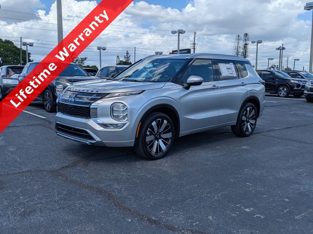 Radio: AM/FM 12.3" Navigation with Smartphone-Link,Heated Front Bucket Seats,Synthetic Leather Seating Surfaces,Wheels: 20" Two-Tone Alloy,4-Wheel Disc Brakes,Emergency communication system: Mitsubishi Connect w/ 24-month trial,Android Auto & Apple CarPlay,Auto High-beam Headlights,Exterior Parking Camera Rear,AM/FM radio: SiriusXM,Front Center Armrest w/Storage,Compass,Speed-Sensitive Wipers,8 Speakers,Auto-dimming Rear-View mirror,Front beverage holders,Variably intermittent wipers,Turn signal indicator mirrors,Trip computer,Traction control,Tilt steering wheel,Telescoping steering wheel,Steering wheel mounted audio controls,Split folding rear seat,Speed control,Security system,Remote keyless entry,Reclining 3rd row seat,Rear window wiper,Rear window defroster,Rear side impact airbag,Rear seat center armrest,Rear anti-roll bar,Rain sensing wipers,Radio data system,Power windows,Power steering,Power driver seat,Power door mirrors,Passenger vanity mirror,Passenger door bin,Panic alarm,Overhead console,Overhead airbag,Outside temperature display,Occupant sensing airbag,Low tire pressure warning,Leather steering wheel,Knee airbag,Illuminated entry,Heated front seats,Heated door mirrors,Garage door transmitter: HomeLink,Fully automatic headlights,Front reading lights,Front fog lights,Front dual zone A/C,Front anti-roll bar,Four wheel independent suspension,Dual front side impact airbags,Dual front impact airbags,Driver vanity mirror,Driver door bin,Delay-off headlights,Bumpers: body-color,Brake assist,Automatic temperature control,Alloy wheels,ABS brakes,3rd row seats: split-bench,Tachometer,Spoiler,Navigation System,Leather Shift Knob,Front Bucket Seats,Electronic Stability Control,Air Conditioning,Power Liftgate