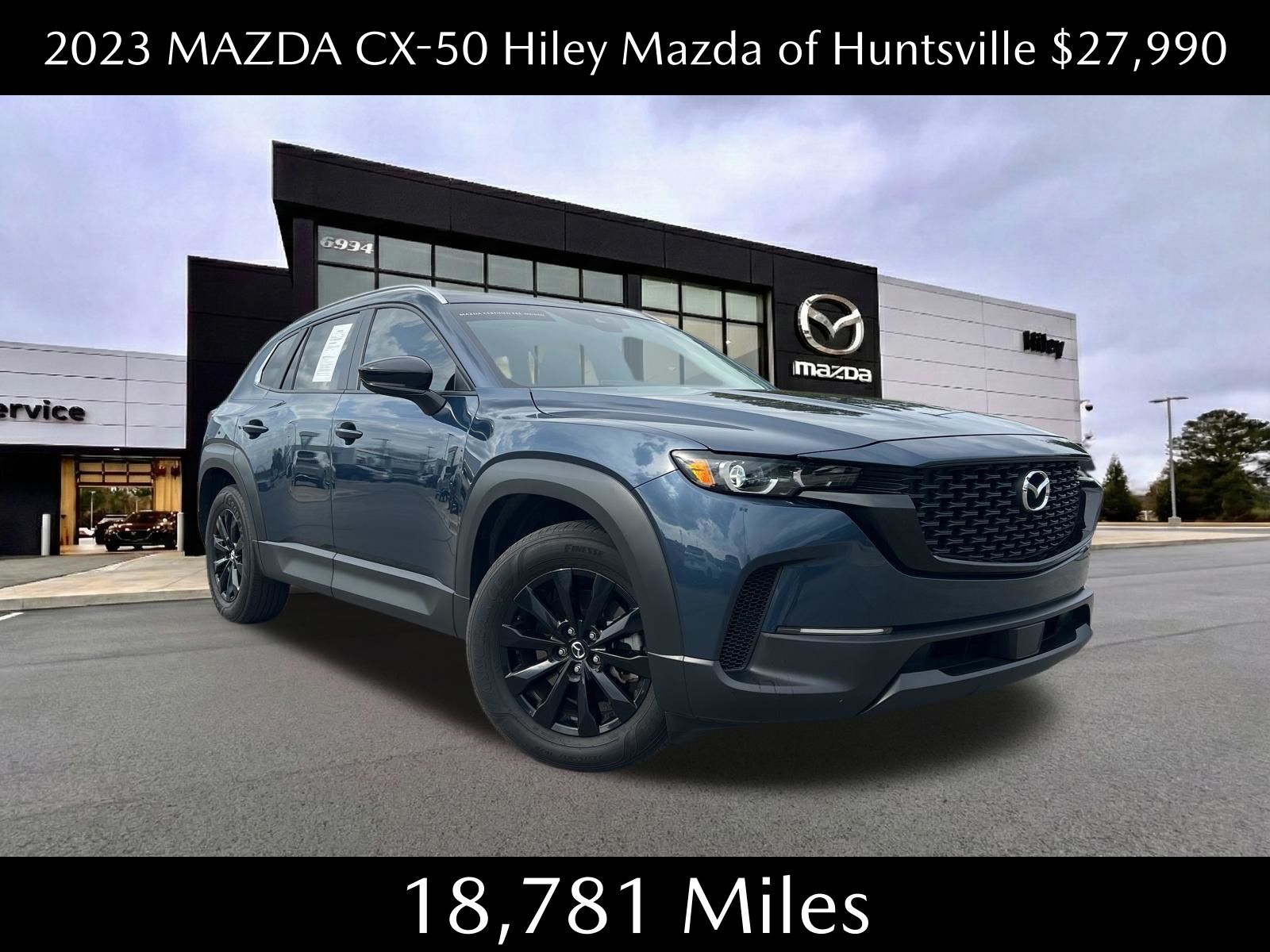 Elevate your driving experience with this exceptional 2024 Mazda CX-50 2.5 S Select Package. Crafted with meticulous attention to detail, this SUV blends style, performance, and advanced technology to deliver a driving experience that will exceed your expectations. - Text Brad Wilhite @ (256) 274-3013 - Cargo Package (Cargo Net, Cargo Blocks) - Carpet Cargo Mat - Machine Gray Metallic Paint Charge - Front dual zone A/C, Remote keyless entry, Steering wheel mounted audio controls, Fully automatic headlights, AppLink/Apple CarPlay and Android Auto, Exterior Parking Camera Rear, Wheels: 17" x 7J Aluminum Alloy, Rain sensing wipers This CX-50 is powered by a SKYACTIV® 2.5L 4-Cylinder DOHC 16V engine, delivering a dynamic and efficient performance with an impressive 24 city/30 highway MPG. The seamless 6-Speed Automatic transmission and standard All-Wheel Drive system provide a confident and responsive driving experience, no matter the road conditions. Step inside and you'll be greeted by a well-appointed interior that combines style and functionality. The half leatherette seat trim, leather-wrapped steering wheel, and front center armrest create a premium and comfortable cabin. The available Cargo Package enhances the vehicle's versatility, with a Cargo Net and Cargo Blocks to keep your belongings secure and organized. Safety is a top priority, and this CX-50 is equipped with a comprehensive suite of advanced safety features. Dual front impact airbags, dual front side impact airbags, knee airbag, and an emergency communication system ensure your peace of mind on every journey. Whether you're embarking on a family adventure or seeking a capable and stylish daily driver, this 2024 Mazda CX-50 2.5 S Select Package is the perfect companion. Experience the exceptional craftsmanship, performance, and features that make this SUV a standout in its class. Displayed sale price/internet price is only valid if the vehicle is financed through a Hiley Mazda/VW of Huntsville preferred lender of the dealership choosing. Subject to credit approval. Pricing excludes taxes, title, dealer documentation fee of $899, and accessories.