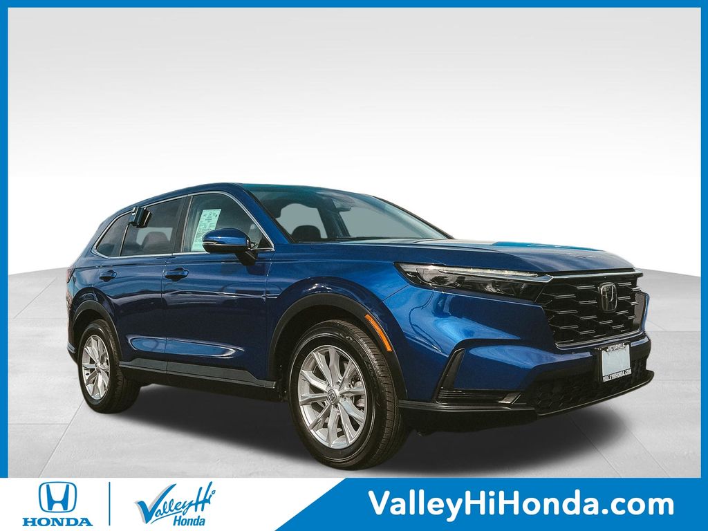 ***Valley Hi Honda in Victorville, CA, serves the High Desert with a wide range of new and pre-owned Honda vehicles. Our friendly team is dedicated to exceptional customer service, from sales to service and financing. Visit us today for all your automotive needs!*** CR-V EX, HondaTrue Certified Certified, 4D Sport Utility, 1.5L I4 DOHC 16V, CVT, AWD, Blue, Black Cloth, 4-Wheel Disc Brakes, 6 Speakers, ABS brakes, Adaptive Cruise Control: Adaptive Cruise Control (ACC) with Low-Speed Follow, Air Conditioning, Alloy wheels, Apple CarPlay/Android Auto, Auto High-beam Headlights, Automatic temperature control, Blind Spot Information (BSI) System warning, Brake assist, Bumpers: body-color, Cloth Seat Trim, Compass, Delay-off headlights, Driver door bin, Driver vanity mirror, Dual front impact airbags, Dual front side impact airbags, Electronic Stability Control, Exterior Parking Camera Rear, Four wheel independent suspension, Front anti-roll bar, Front Bucket Seats, Front Center Armrest, Front dual zone A/C, Front reading lights, Fully automatic headlights, Heated door mirrors, Heated Front Bucket Seats, Heated front seats, Illuminated entry, Knee airbag, Low tire pressure warning, Occupant sensing airbag, Outside temperature display, Overhead airbag, Overhead console, Panic alarm, Passenger door bin, Passenger vanity mirror, Power door mirrors, Power driver seat, Power moonroof, Power steering, Power windows, Radio data system, Radio: 240-Watt AM/FM Audio System, Rear anti-roll bar, Rear reading lights, Rear seat center armrest, Rear side impact airbag, Rear window defroster, Rear window wiper, Remote keyless entry, Security system, Speed control, Speed-sensing steering, Speed-Sensitive Wipers, Split folding rear seat, Spoiler, Steering wheel mounted audio controls, Tachometer, Telescoping steering wheel, Tilt steering wheel, Traction control, Trip computer, Turn signal indicator mirrors, Variably intermittent wipers, and Wheels: 18" Sparkle Silver Alloy Metallic. Recent Arrival! Certified. HondaTrue Certified Details: * 182 Point Inspection * Powertrain Limited Warranty: 84 Month/100,000 Mile (whichever comes first) from original in-service date * Warranty Deductible: $0 * Roadside Assistance * Vehicles purchased within New Vehicle Limited Warranty period: extends New Vehicle Limited Warranty to 5 years*/60,000 miles*. Honda Care Roadside Assistance for 2 year/100,000 miles (whichever occurs first). Up to two complimentary oil changes within the first year of ownership. SiriusXM 90-Day Trial. * Transferable Warranty * Limited Warranty: 24 Month/100,000 Mile (whichever comes first) after new car warranty expires or from certified purchase date * Vehicle History CARFAX One-Owner. Clean CARFAX. CR-V EX, 4D Sport Utility, 1.5L I4 DOHC 16V, CVT, AWD, Blue, Black Cloth. Blue AWD Odometer is 7664 miles below market average! 26/31 City/Highway MPG 2025 Honda CR-V EX 1.5L I4 DOHC 16V If you're searching for a high-quality vehicle or need professional auto repairs close to home, come to Valley Hi Honda, the only Honda dealer in the High Desert. We have an expert team ready to help with everything from flexible Honda financing options to top-notch Honda service to ensure that you fully enjoy your time on the road. Come meet with the team at Valley Hi Honda and see how our hometown feel, great prices and incredible selection make us the local car dealer you can trust! All vehicles subject to prior sale, price does not include Tax, Title, Registration or Documentation Fees. See Dealer for Details.